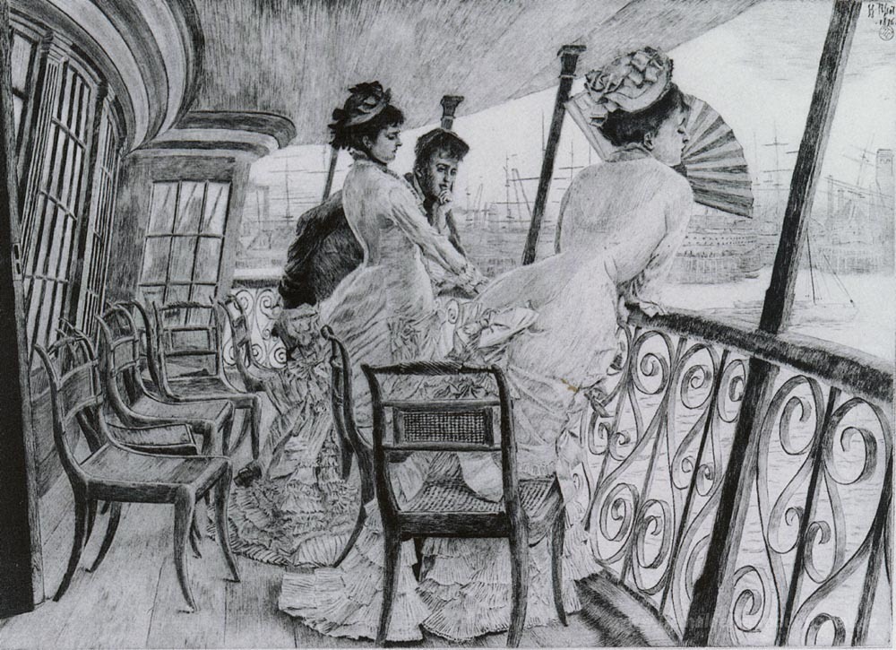 Wir bieten Ihnen eine handgefertigte Reproduktion auf Leinwand des berühmten Kunstwerks 'Remembrance Kugel on Board' von James Tissot, aus dem Reproduktionsmuseum.