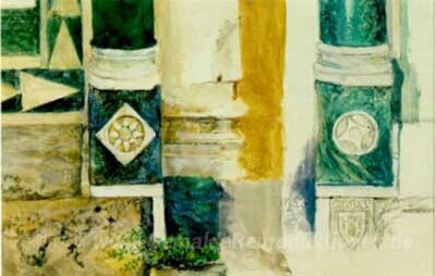 Wir bieten Ihnen eine handgefertigte Reproduktion auf Leinwand des berühmten Kunstwerks 'Säulenbasen Tür Badia Fiesolana' von John Ruskin, aus dem Reproduktionsmuseum.
