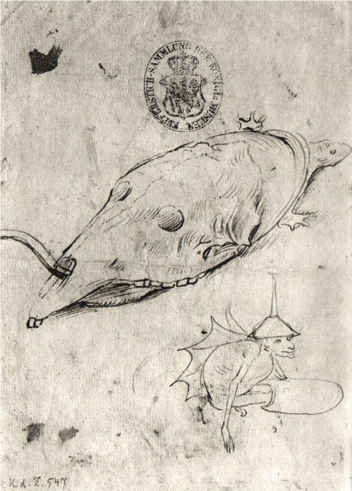 Wir bieten Ihnen eine handgefertigte Reproduktion auf Leinwand des berühmten Kunstwerks 'Schildkröte und ein geflügelter Dämon' von Hieronymus Bosch, aus dem Reproduktionsmuseum.