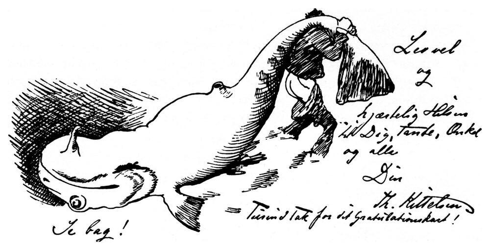 Wir bieten Ihnen eine handgefertigte Reproduktion auf Leinwand des berühmten Kunstwerks 'Shop Fisken Som Papa Fikk Paa Kroken' von Theodor Severin Kittelsen, aus dem Reproduktionsmuseum.