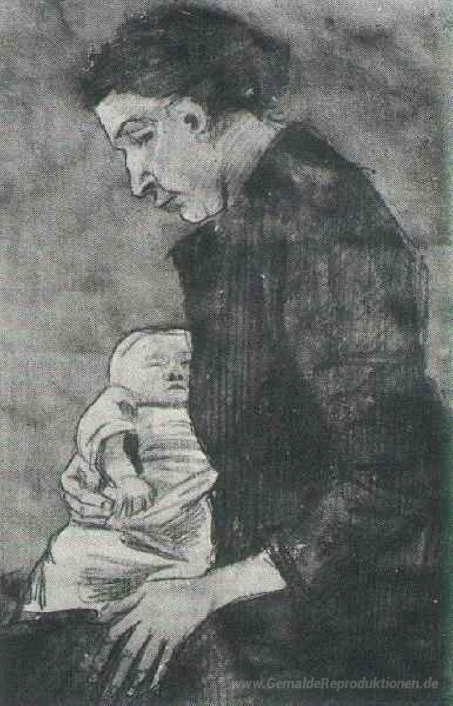 Wir bieten Ihnen eine handgefertigte Reproduktion auf Leinwand des berühmten Kunstwerks 'Sien Nursing Baby, Halbfigur' von Vincent van Gogh, aus dem Reproduktionsmuseum.