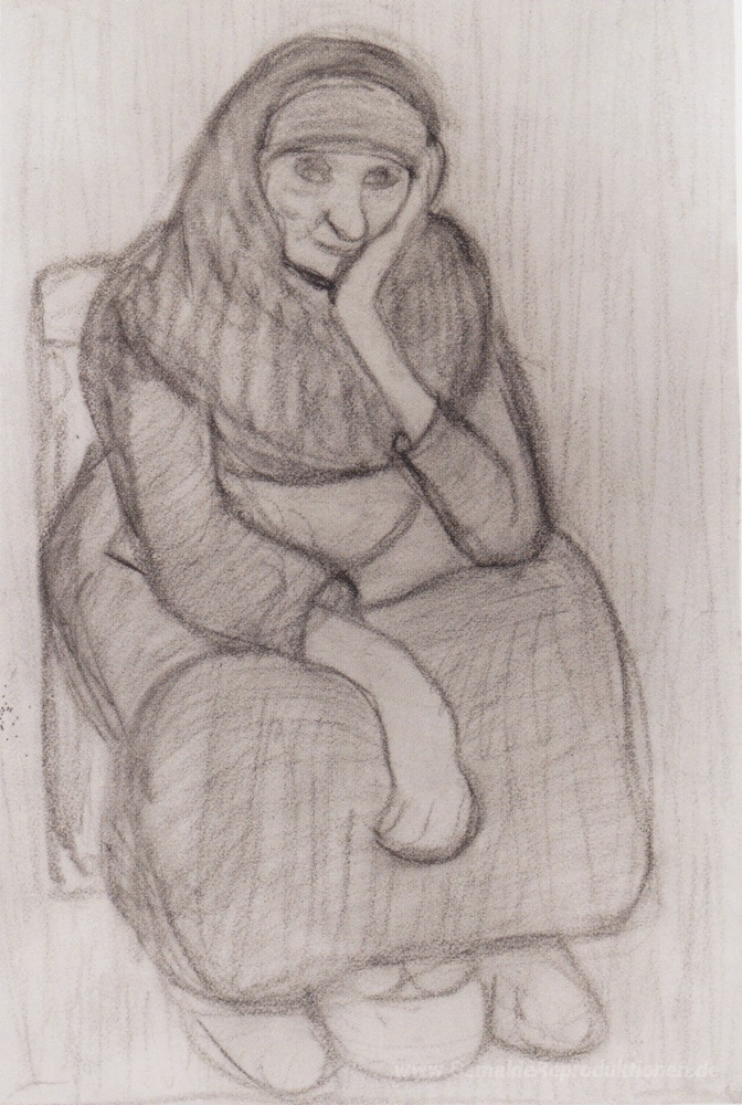 Wir bieten Ihnen eine handgefertigte Reproduktion auf Leinwand des berühmten Kunstwerks 'Sitzende Bäuerin' von Paula Modersohn-Becker, aus dem Reproduktionsmuseum.