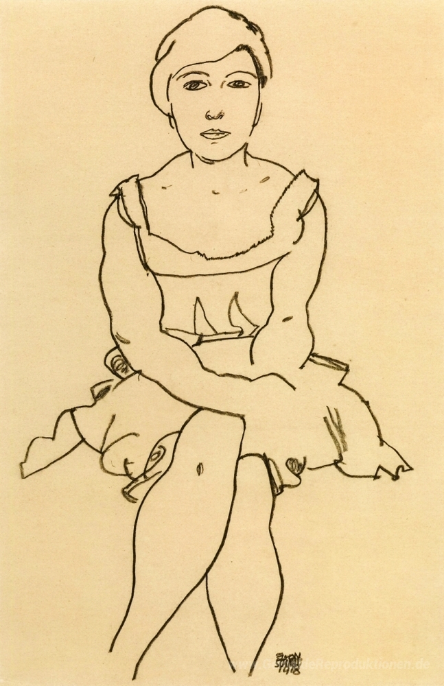 Wir bieten Ihnen eine handgefertigte Reproduktion auf Leinwand des berühmten Kunstwerks 'Sitzende Frau' von Egon Schiele, aus dem Reproduktionsmuseum.