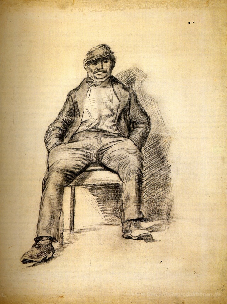 Wir bieten Ihnen eine handgefertigte Reproduktion auf Leinwand des berühmten Kunstwerks 'Sitzender Mann mit einem Schnurrbart und Cap' von Vincent van Gogh, aus dem Reproduktionsmuseum.