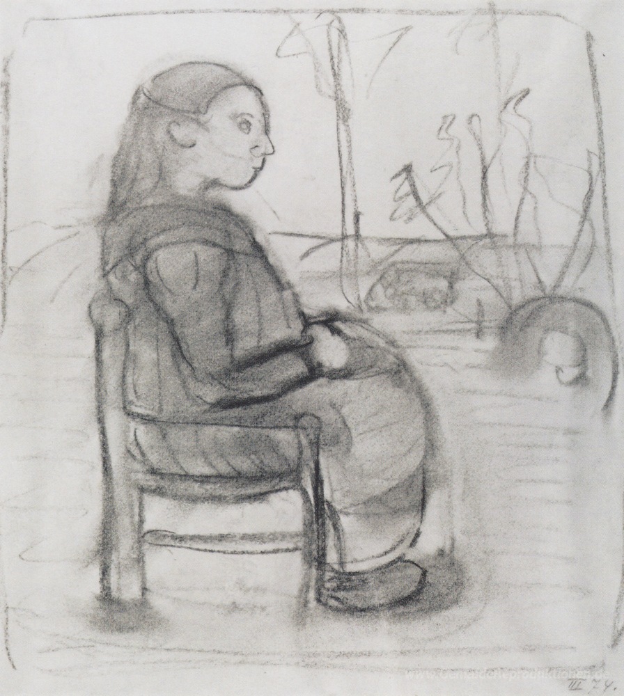 Wir bieten Ihnen eine handgefertigte Reproduktion auf Leinwand des berühmten Kunstwerks 'Sitzmädchen in einer Landschaft, auf der rechten Seite' von Paula Modersohn-Becker, aus dem Reproduktionsmuseum.