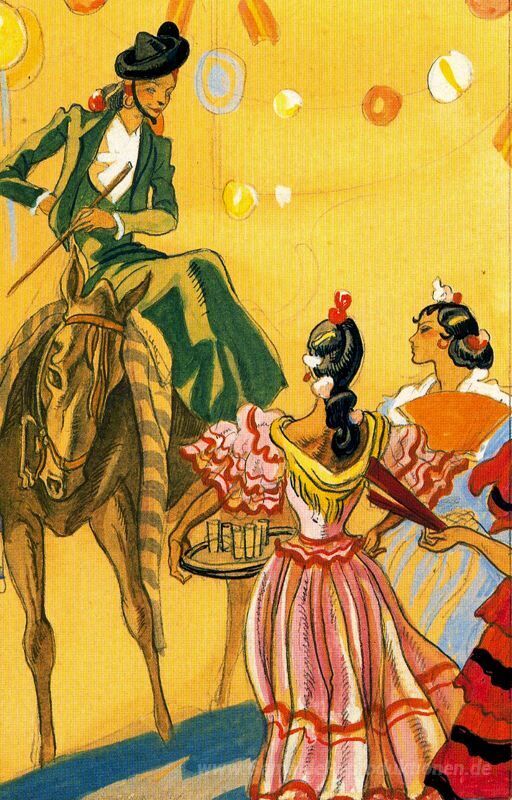 Wir bieten Ihnen eine handgefertigte Reproduktion auf Leinwand des berühmten Kunstwerks 'Sketch für die Folk-Szene' von Carlos Saenz de Tejada, aus dem Reproduktionsmuseum.