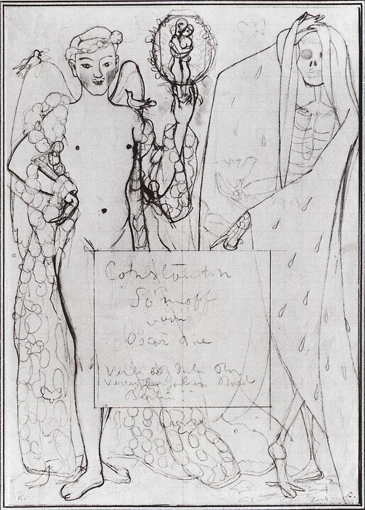 Wir bieten Ihnen eine handgefertigte Reproduktion auf Leinwand des berühmten Kunstwerks 'Skizze der Bucheinband' von Konstantin Somov, aus dem Reproduktionsmuseum.