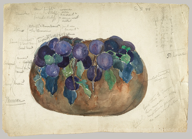 Wir bieten Ihnen eine handgefertigte Reproduktion auf Leinwand des berühmten Kunstwerks 'Skizze der Emailleschüssel' von Louis Comfort Tiffany, aus dem Reproduktionsmuseum.