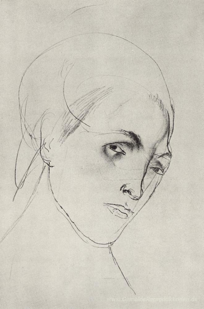 Wir bieten Ihnen eine handgefertigte Reproduktion auf Leinwand des berühmten Kunstwerks 'Skizze der Kopf einer Frau, um das Bild der Mutter' von Kuzma Petrov-Vodkin, aus dem Reproduktionsmuseum.