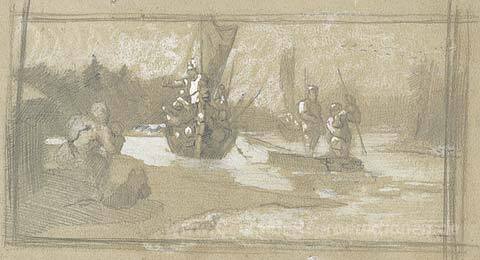 Wir bieten Ihnen eine handgefertigte Reproduktion auf Leinwand des berühmten Kunstwerks 'Skizze der Szene aus Varangian Leben' von Nicholas Roerich, aus dem Reproduktionsmuseum.