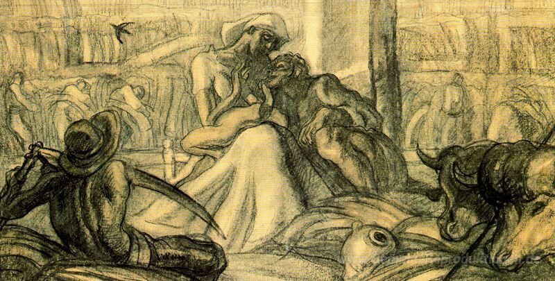 Wir bieten Ihnen eine handgefertigte Reproduktion auf Leinwand des berühmten Kunstwerks 'Skizze der Wandschmuck für das Institut für Agrarforschung Madir' von Carlos Saenz de Tejada, aus dem Reproduktionsmuseum.