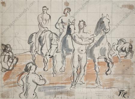 Wir bieten Ihnen eine handgefertigte Reproduktion auf Leinwand des berühmten Kunstwerks 'Skizze der Zusammensetzung für die Malerei "Bathing Kavallerie"' von Pyotr Konchalovsky, aus dem Reproduktionsmuseum.