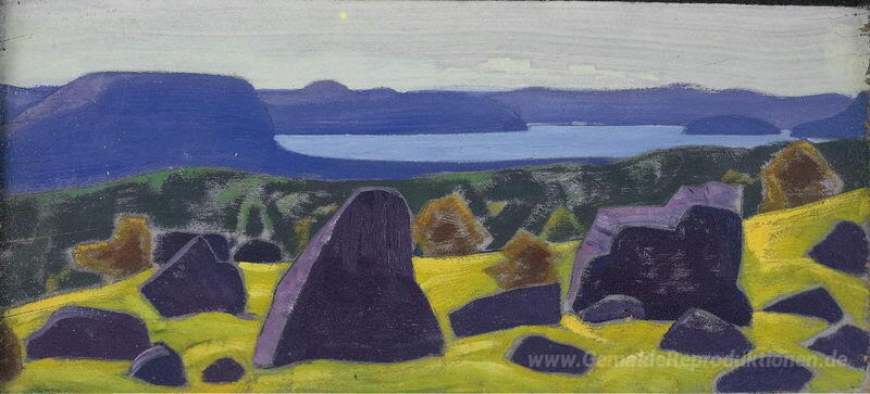Wir bieten Ihnen eine handgefertigte Reproduktion auf Leinwand des berühmten Kunstwerks 'Skizze für Ladoga-Serie' von Nicholas Roerich, aus dem Reproduktionsmuseum.