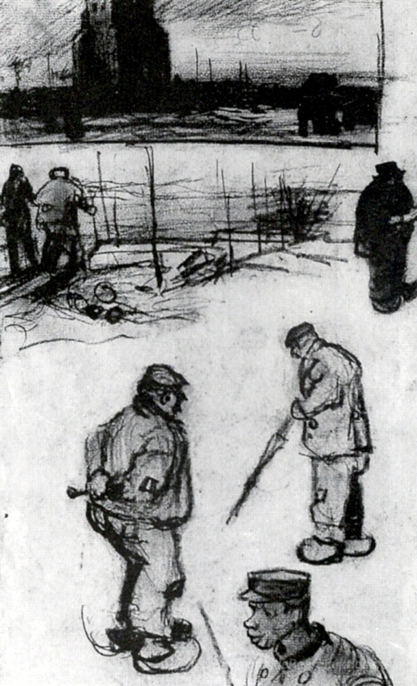 Wir bieten Ihnen eine handgefertigte Reproduktion auf Leinwand des berühmten Kunstwerks 'Skizzen der alten Turm und Fakten' von Vincent van Gogh, aus dem Reproduktionsmuseum.