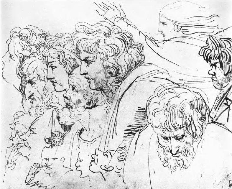 Wir bieten Ihnen eine handgefertigte Reproduktion auf Leinwand des berühmten Kunstwerks 'Skizzen der Köpfe' von Orest Kiprensky, aus dem Reproduktionsmuseum.