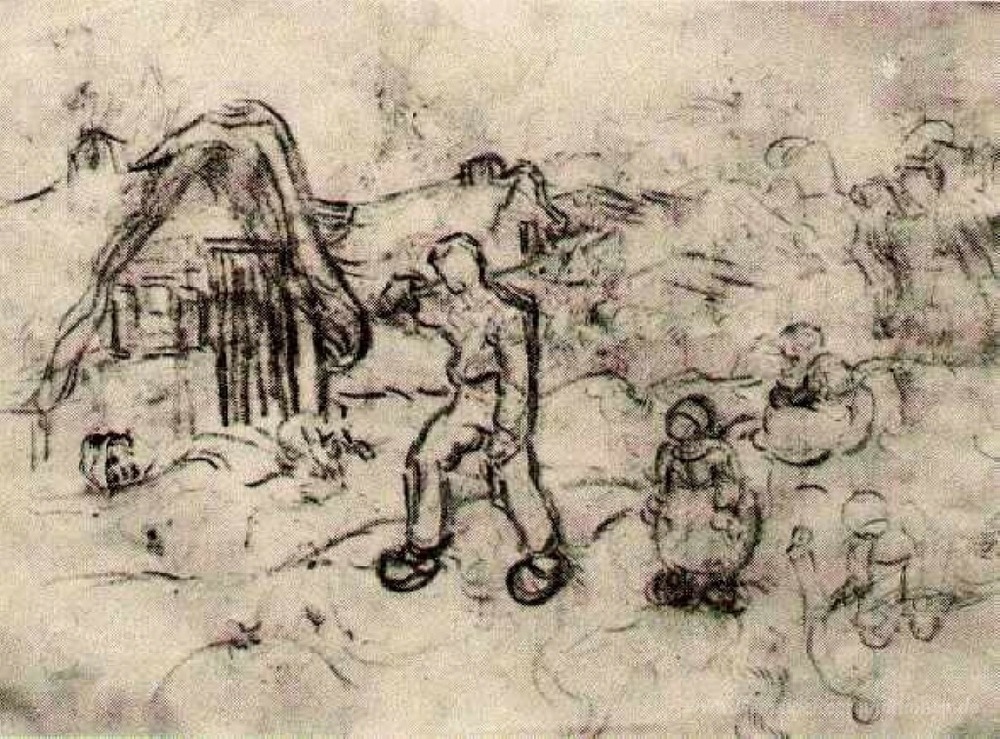 Wir bieten Ihnen eine handgefertigte Reproduktion auf Leinwand des berühmten Kunstwerks 'Skizzen einer Hütte und Fakten' von Vincent van Gogh, aus dem Reproduktionsmuseum.