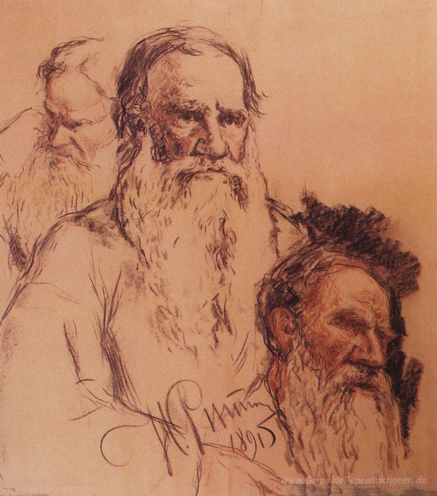 Wir bieten Ihnen eine handgefertigte Reproduktion auf Leinwand des berühmten Kunstwerks 'Skizzen von Leo Tolstoi' von Ilya Repin, aus dem Reproduktionsmuseum.