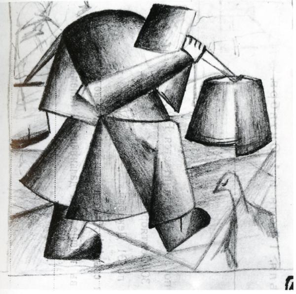 Wir bieten Ihnen eine handgefertigte Reproduktion auf Leinwand des berühmten Kunstwerks 'Skizzieren Sie auf das Portrait eines Erbauers' von Kazimir Malevich, aus dem Reproduktionsmuseum.