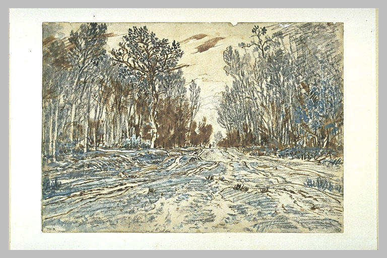 Wir bieten Ihnen eine handgefertigte Reproduktion auf Leinwand des berühmten Kunstwerks 'Snowy Pfad durch eine Holz in den Wald von Fontainebleau' von Theodore Rousseau, aus dem Reproduktionsmuseum.