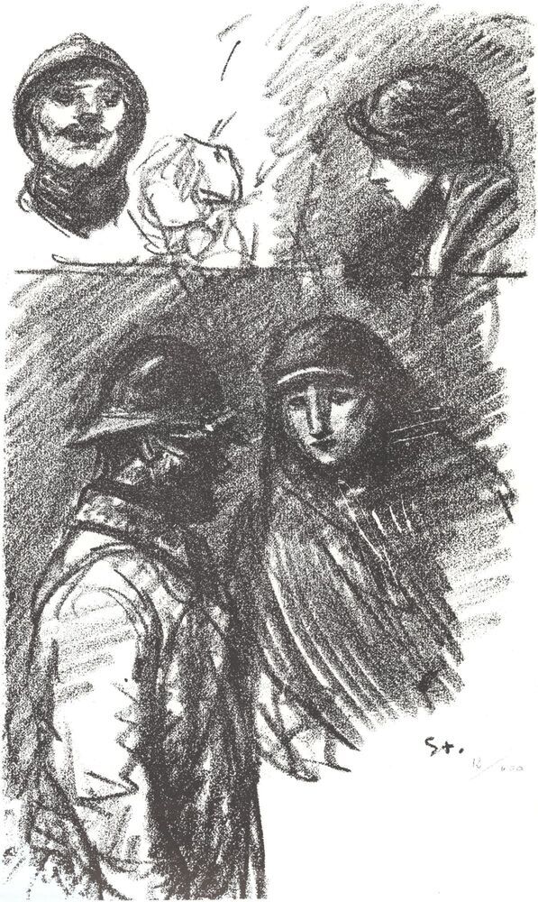 Steinlens Stil verbindet Impressionismus mit einem tiefen Verständnis für Komposition und Licht, was jedem seiner Werke eine einzigartige Tiefe verleiht. Die kunstvollen Techniken, die er anwendet, sorgen dafür, dass die Farben lebendig und die Texturen spürbar sind. Das Gemälde Soldat et Infirmiere fängt einen berührenden Moment ein, der das Ambiente Ihres Raumes maßgeblich beeinflussen kann, indem es sowohl Ruhe als auch emotionale Tiefe ausstrahlt. Verleihen Sie Ihrem Zuhause mit einem Meisterwerk von Steinlen eine besondere Note.