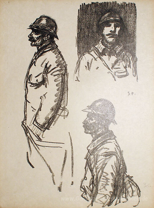 Wir bieten Ihnen eine handgefertigte Reproduktion auf Leinwand des berühmten Kunstwerks 'Soldats- Trois Croquis' von Theophile Steinlen, aus dem Reproduktionsmuseum.