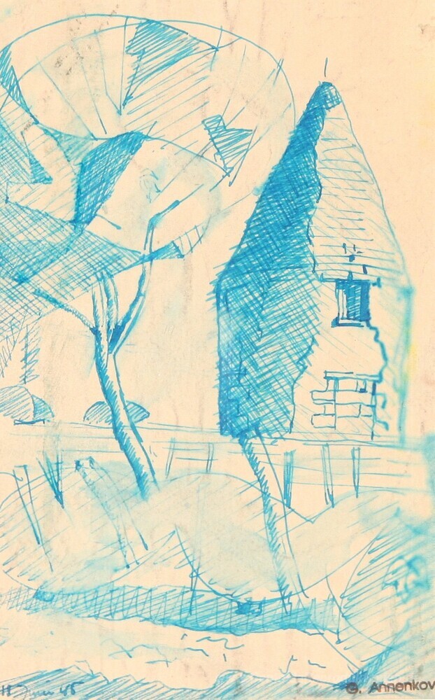 Wir bieten Ihnen eine handgefertigte Reproduktion auf Leinwand des berühmten Kunstwerks 'Spire und Bäume' von Jury Annenkov, aus dem Reproduktionsmuseum.