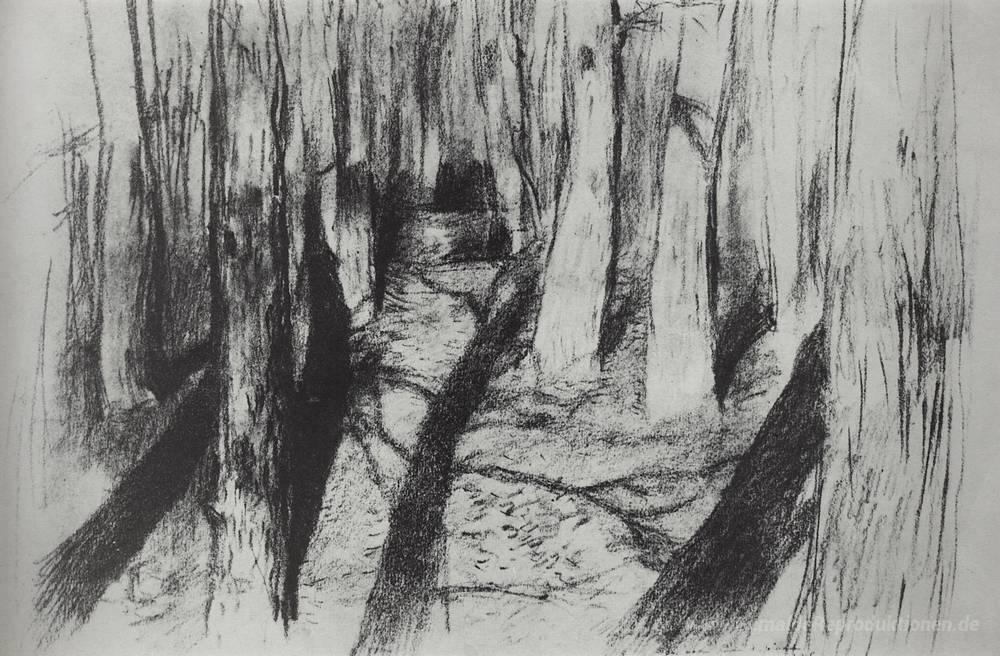 Wir bieten Ihnen eine handgefertigte Reproduktion auf Leinwand des berühmten Kunstwerks 'Stämme der Bäume' von Isaac Levitan, aus dem Reproduktionsmuseum.