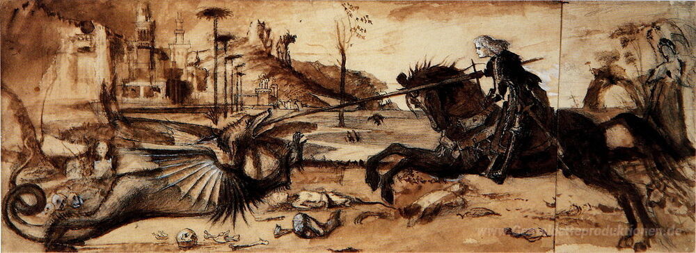 Wir bieten Ihnen eine handgefertigte Reproduktion auf Leinwand des berühmten Kunstwerks 'St. Georg und der Drache' von John Ruskin, aus dem Reproduktionsmuseum.