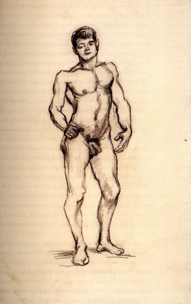 Wir bieten Ihnen eine handgefertigte Reproduktion auf Leinwand des berühmten Kunstwerks 'Standing Male Nude gesehen von der Front' von Vincent van Gogh, aus dem Reproduktionsmuseum.