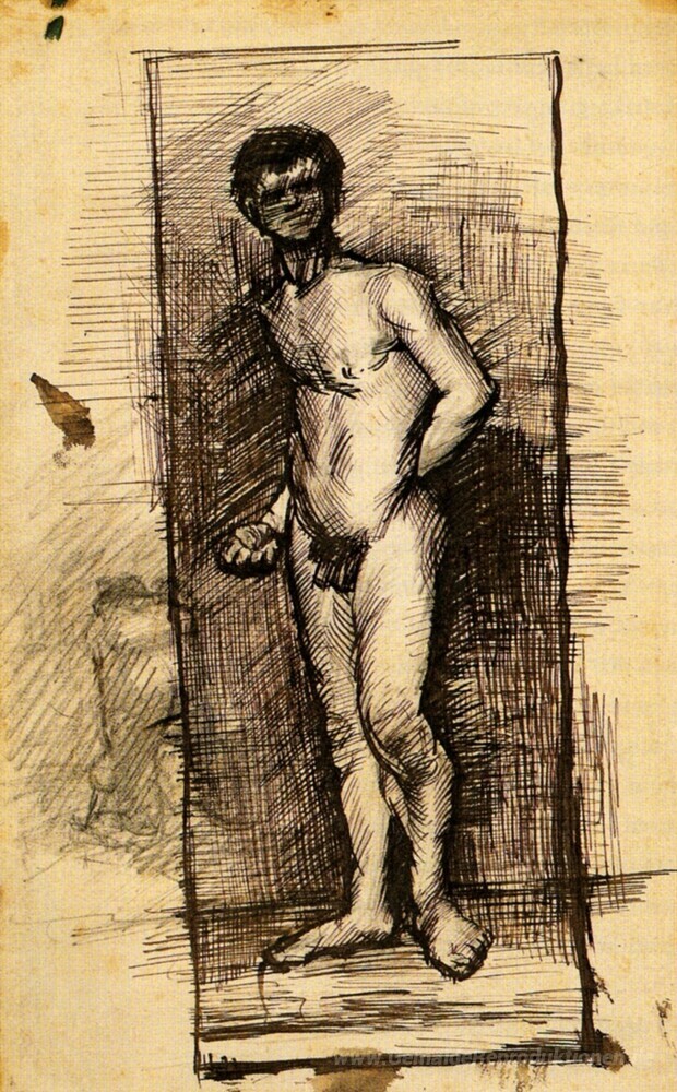 Wir bieten Ihnen eine handgefertigte Reproduktion auf Leinwand des berühmten Kunstwerks 'Standing Male Nude gesehen von der Front' von Vincent van Gogh, aus dem Reproduktionsmuseum.