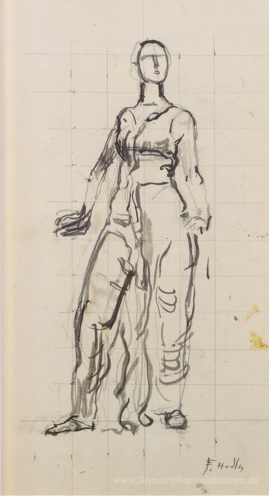 Wir bieten Ihnen eine handgefertigte Reproduktion auf Leinwand des berühmten Kunstwerks 'Stehende Gewandfigur' von Ferdinand Hodler, aus dem Reproduktionsmuseum.