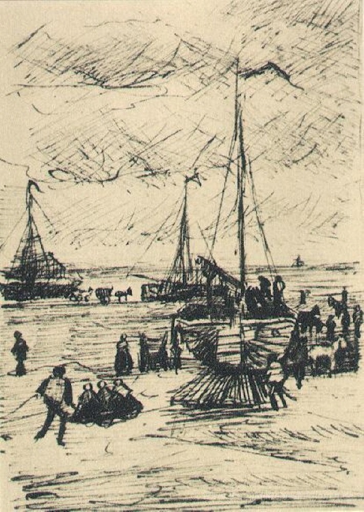 Wir bieten Ihnen eine handgefertigte Reproduktion auf Leinwand des berühmten Kunstwerks 'Strand und Boote' von Vincent van Gogh, aus dem Reproduktionsmuseum.