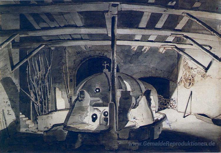 Wir bieten Ihnen eine handgefertigte Reproduktion auf Leinwand des berühmten Kunstwerks 'Studie des Innern des Glass House' von Joseph Wright, aus dem Reproduktionsmuseum.