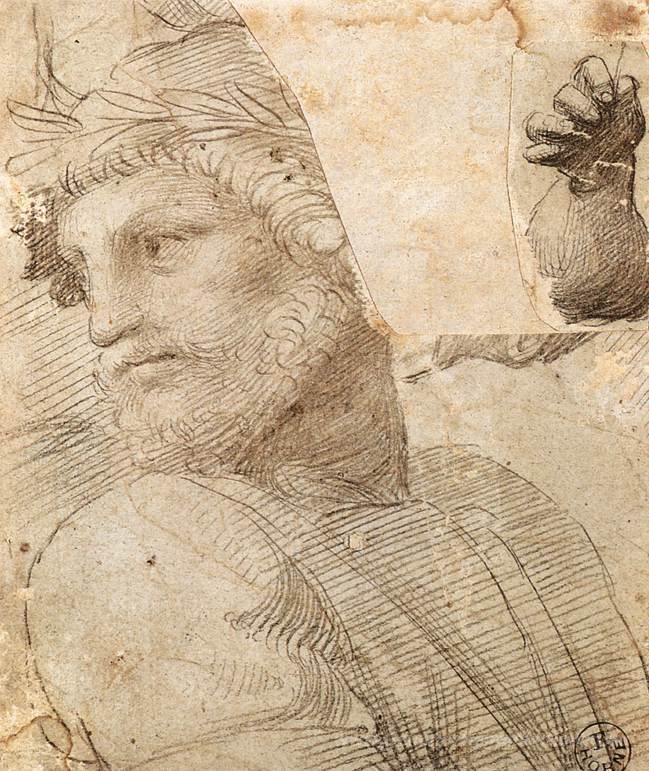 Wir bieten Ihnen eine handgefertigte Reproduktion auf Leinwand des berühmten Kunstwerks 'Studie für den Kopf eines Dichters' von Raphael, aus dem Reproduktionsmuseum.