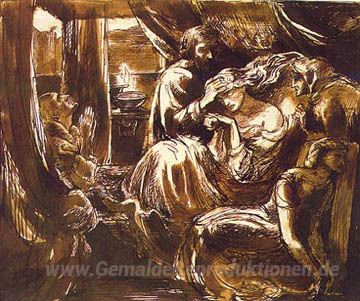 Wir bieten Ihnen eine handgefertigte Reproduktion auf Leinwand des berühmten Kunstwerks 'Studie für den Tod von Lady Macbeth' von Dante Gabriel Rossetti, aus dem Reproduktionsmuseum.