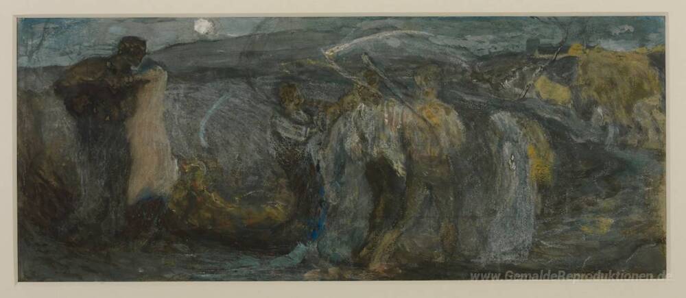 Willkommen bei unserer exklusiven Sammlung von Ölgemälden, wo Kunst und Eleganz in jedem Pinselstrich verschmelzen. Unter den herausragenden Werken präsentieren wir die Studie für "die Harvest Moon" des talentierten Künstlers George Hemming Mason. Dieses faszinierende Kunstwerk fängt die Mystik der Natur und die harmonische Beziehung zwischen Licht und Schatten ein, was Mason zu einem Meister seines Fachs macht.