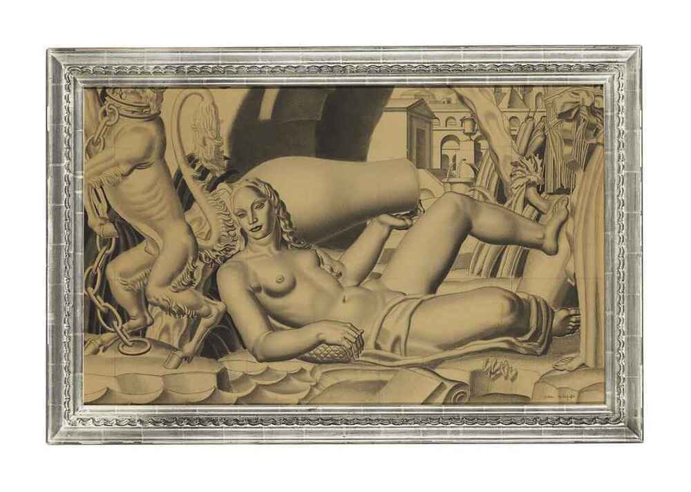 Wir bieten Ihnen eine handgefertigte Reproduktion auf Leinwand des berühmten Kunstwerks 'Studie für La Gloire de Bordeaux' von Jean Dupas, aus dem Reproduktionsmuseum.