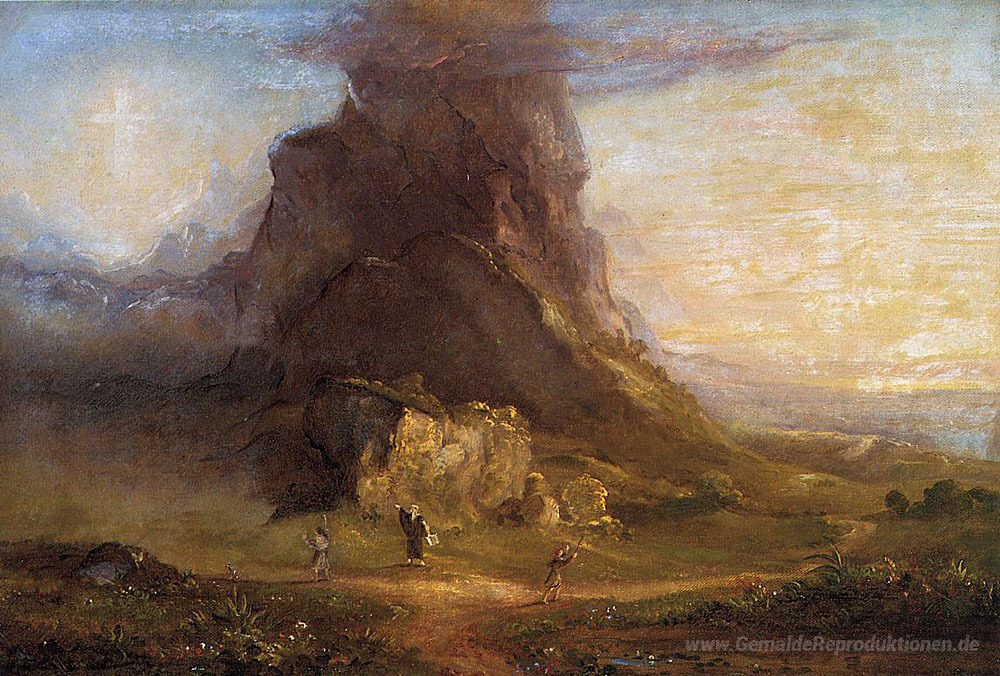 Willkommen in unserer exquisiten Kollektion von Ölgemälden, die die zeitlose Eleganz und kreative Ausdruckskraft hochklassiger Künstler präsentieren. Eines unserer herausragenden Werke ist Studie für zwei Jugendliche nach einer Pilgerfahrt von Thomas Cole, einem Meister der amerikanischen Landschaftsmalerei des 19. Jahrhunderts. Cole, bekannt für seine romantischen und oft dramatischen Darstellungen der Natur, verbindet in diesem Stück tiefgründige Emotionen mit nostalgischen Themen und fesselnden Farben.