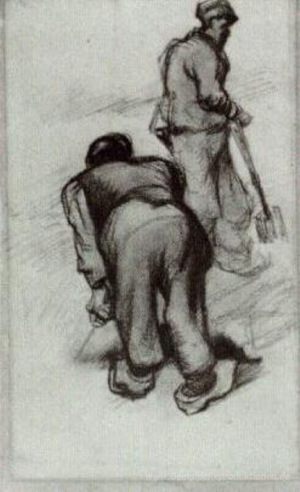 Wir bieten Ihnen eine handgefertigte Reproduktion auf Leinwand des berühmten Kunstwerks 'Studie von zwei Bauern' von Vincent van Gogh, aus dem Reproduktionsmuseum.