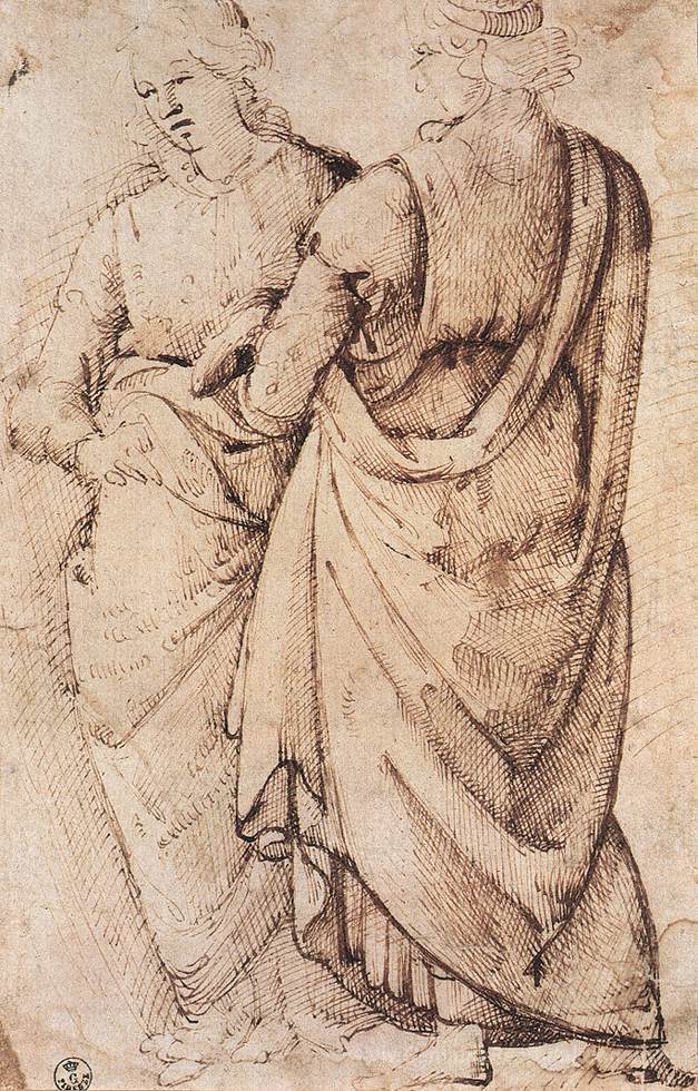 Wir bieten Ihnen eine handgefertigte Reproduktion auf Leinwand des berühmten Kunstwerks 'Studie von zwei Frauen' von Domenico Ghirlandaio, aus dem Reproduktionsmuseum.