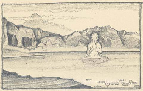 Wir bieten Ihnen eine handgefertigte Reproduktion auf Leinwand des berühmten Kunstwerks 'Studie zu "Lotos"' von Nicholas Roerich, aus dem Reproduktionsmuseum.