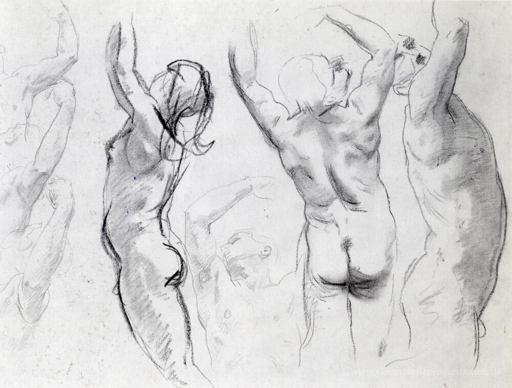 Jedes Ölgemälde wird mit höchster Sorgfalt und Liebe zum Detail geschaffen. Sargent nutzt klassische Techniken, um bewegende Emotionen und eine harmonische Komposition zu vermitteln. Das „Studien eines Nude Jugend“ zieht Betrachter durch seine subtile Farbpalette und die dynamische Poses kraftvoll an, wodurch es eine stille Eleganz in jeden Raum bringt. Erleben Sie, wie dieses Meisterwerk eine einmalige Atmosphäre schafft und Ihre Wohn- oder Arbeitsumgebung bereichert.