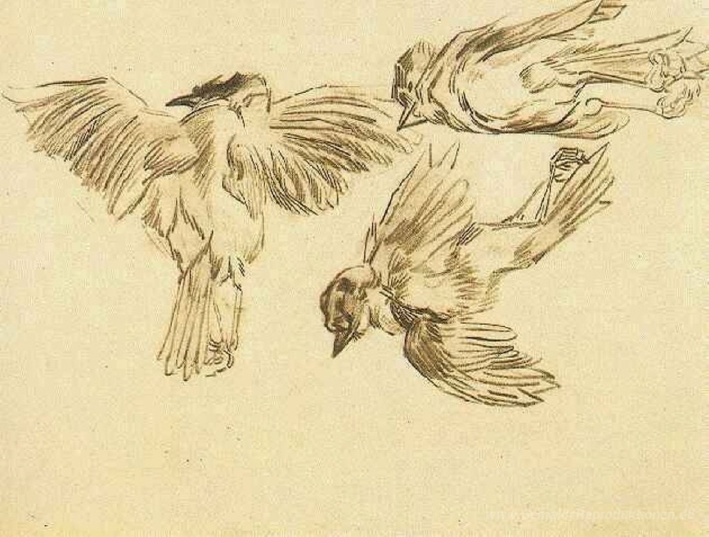Wir bieten Ihnen eine handgefertigte Reproduktion auf Leinwand des berühmten Kunstwerks 'Studien eines toten Spatz' von Vincent van Gogh, aus dem Reproduktionsmuseum.