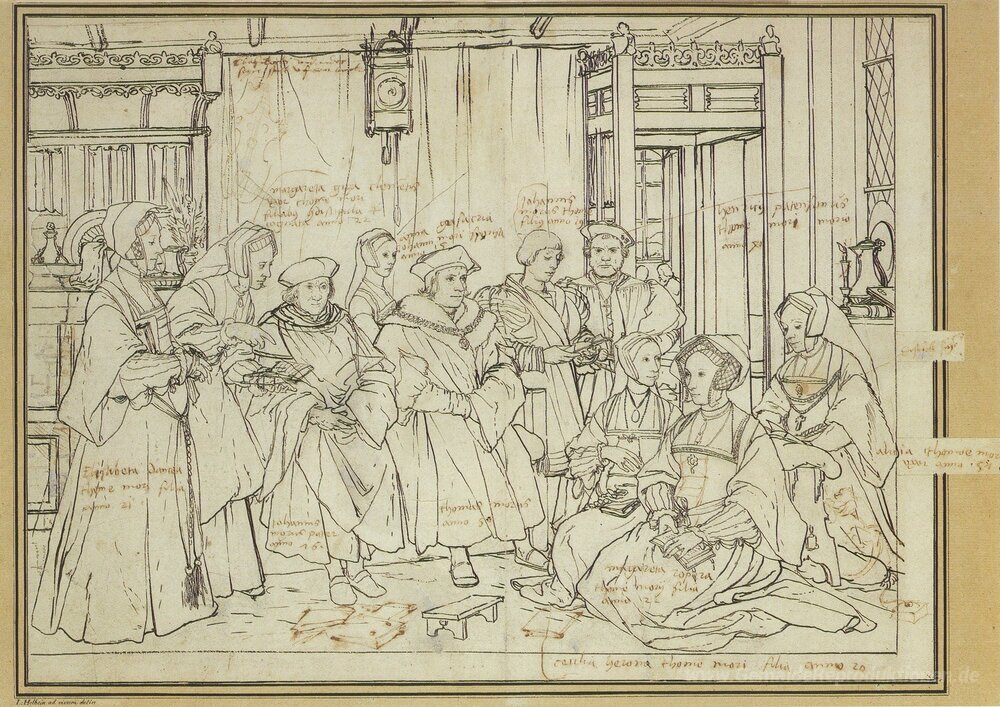 Wir bieten Ihnen eine handgefertigte Reproduktion auf Leinwand des berühmten Kunstwerks 'Studieren Sie für die Family Portrait von Thomas More' von Hans Holbein the Younger, aus dem Reproduktionsmuseum.
