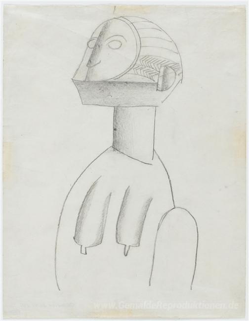 Wir bieten Ihnen eine handgefertigte Reproduktion auf Leinwand des berühmten Kunstwerks 'Studium der Maske für die Erstellung von Monde' von Fernand Leger, aus dem Reproduktionsmuseum.