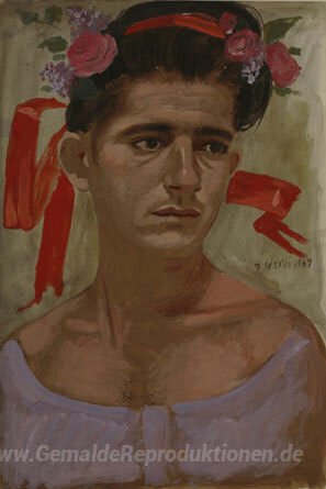 Wir bieten Ihnen eine handgefertigte Reproduktion auf Leinwand des berühmten Kunstwerks 'Study for '' Mai ''' von Yiannis Tsaroychis, aus dem Reproduktionsmuseum.