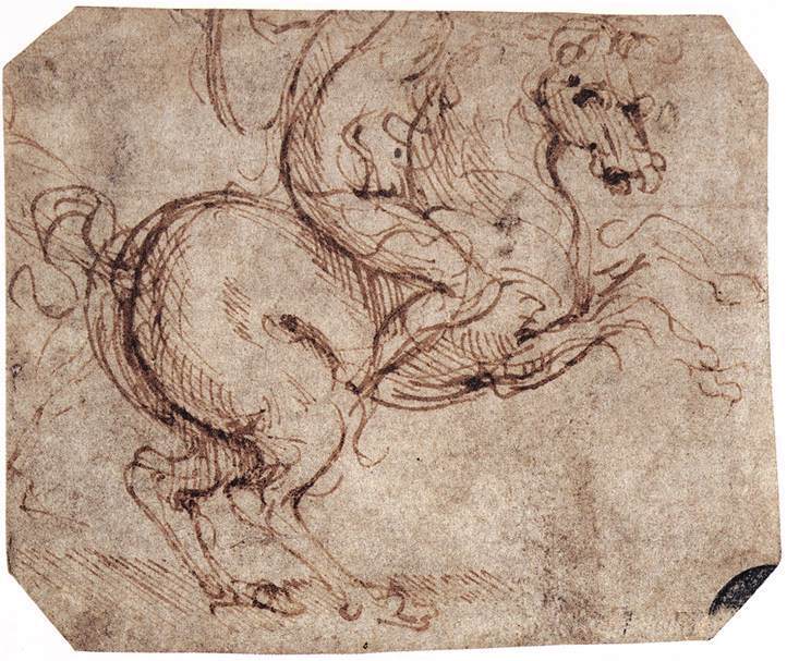 Wir bieten Ihnen eine handgefertigte Reproduktion auf Leinwand des berühmten Kunstwerks 'Study of a rider' von Leonardo da Vinci, aus dem Reproduktionsmuseum.