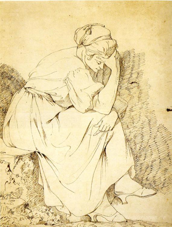 Wir bieten Ihnen eine handgefertigte Reproduktion auf Leinwand des berühmten Kunstwerks 'Study of Melancholy Mädchen' von Joseph Wright, aus dem Reproduktionsmuseum.