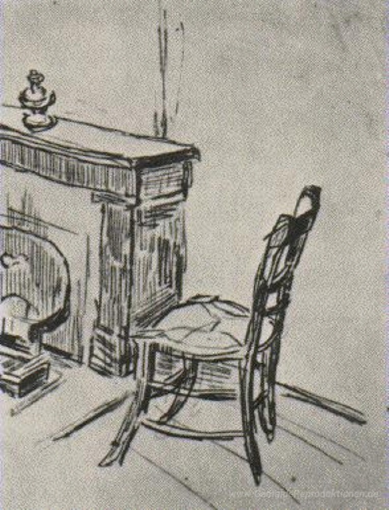 Wir bieten Ihnen eine handgefertigte Reproduktion auf Leinwand des berühmten Kunstwerks 'Stuhl neben dem Herd' von Vincent van Gogh, aus dem Reproduktionsmuseum.