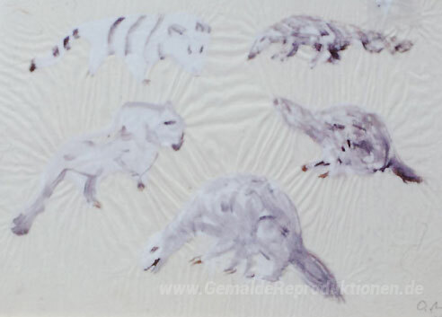 Wir bieten Ihnen eine handgefertigte Reproduktion auf Leinwand des berühmten Kunstwerks 'Tier Sketches' von Mark Tobey, aus dem Reproduktionsmuseum.